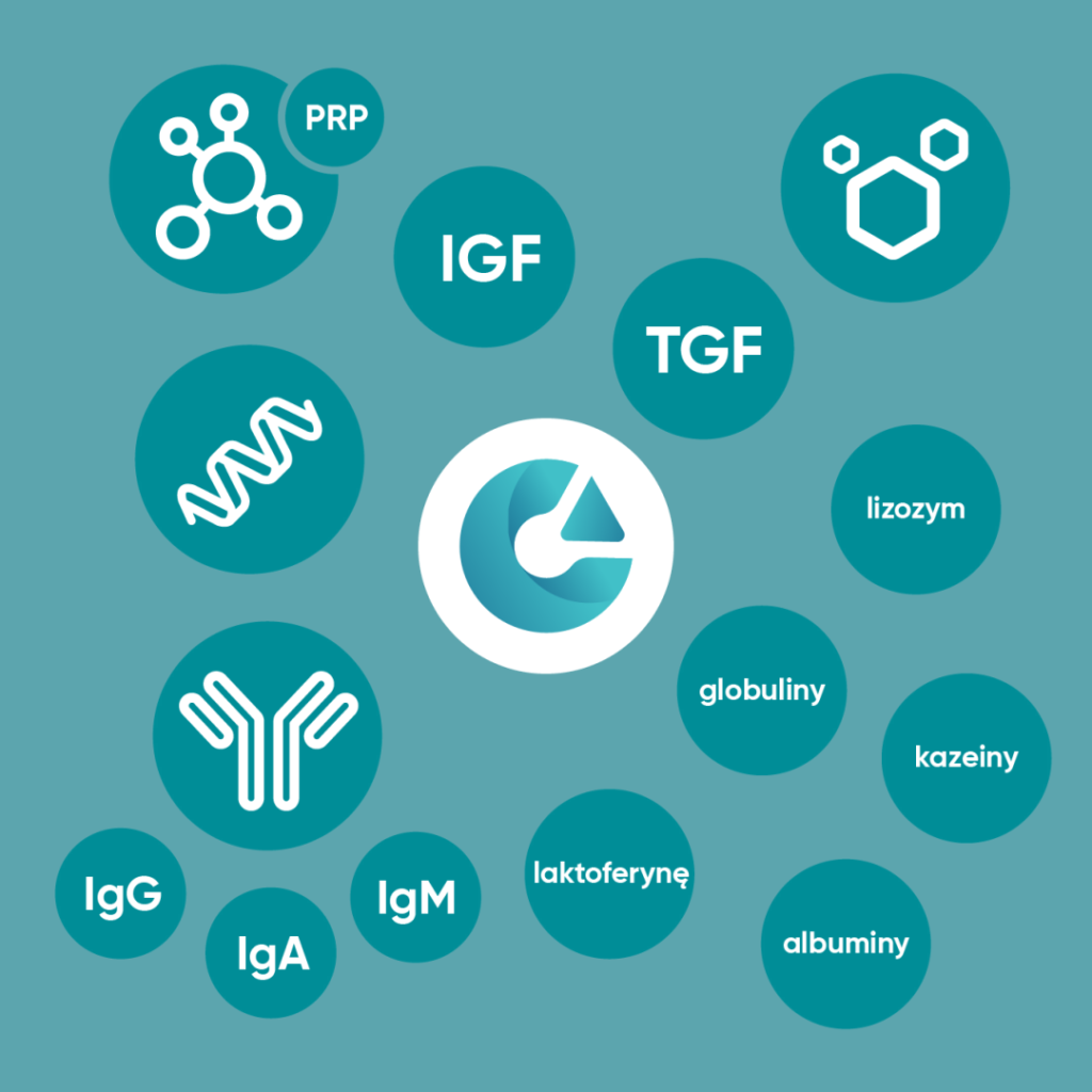 Colostrum nie jest przeznaczone wyłącznie dla niemowląt. Badania naukowe wykazały, że jego składniki wspierają zdrowie dorosłych i osób starszych. Zawiera około 250 różnych substancji bioaktywnych: białka, enzymy, hormony, witaminy, minerały, czynniki wzrostu i przeciwciała. Wśród nich trzy składniki mają kluczowe znaczenie: immunoglobuliny IgG, peptydy bogate w prolinę (PRP) oraz laktoferyna. Każdy działa w specyficzny sposób, a razem tworzą kompleksową ochronę organizmu.